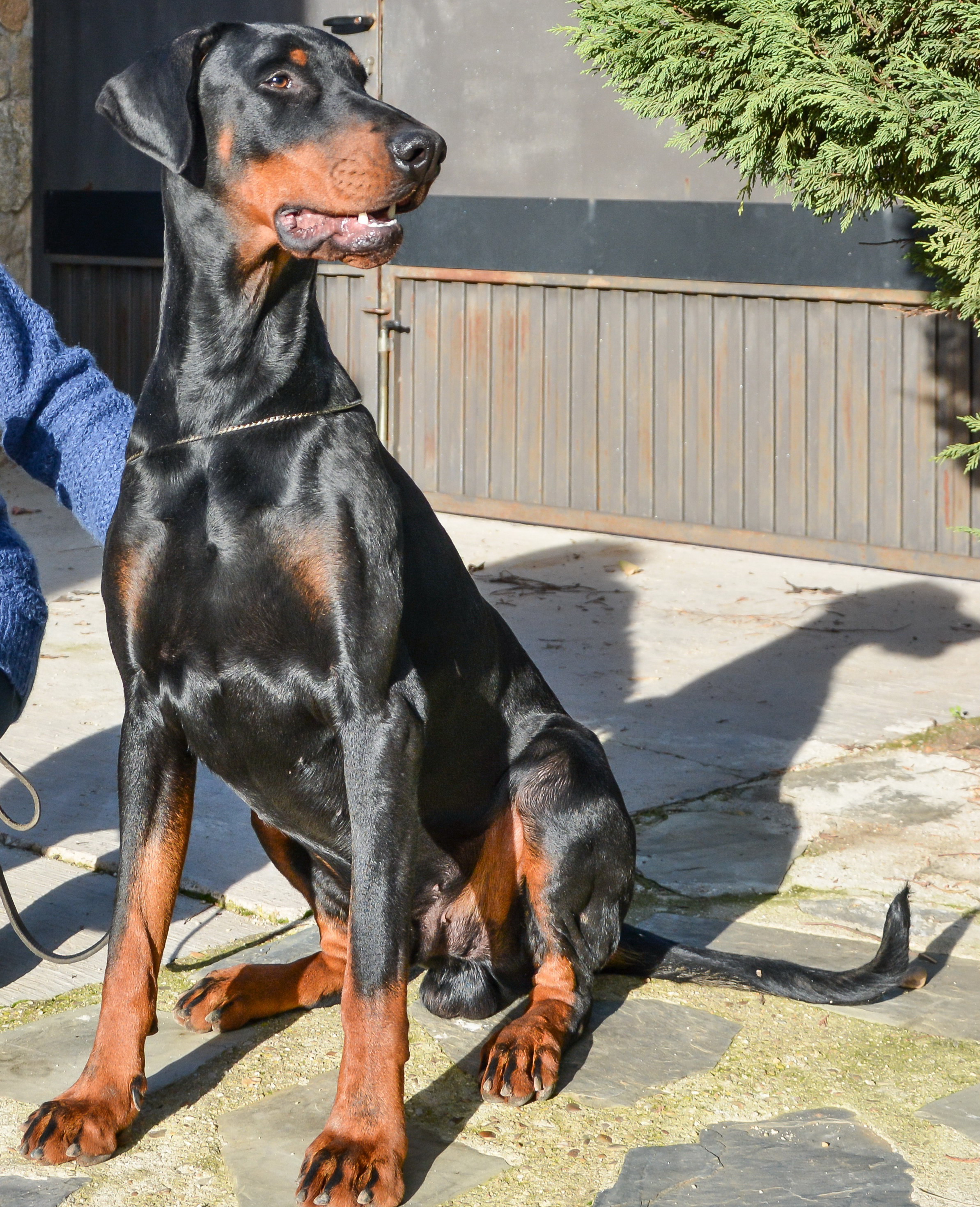 MACHO GRANDE ,NEGRO Y FUEGO, ALZADA 72 CM, PESO 44 KG. CUERPO COMPACTO, AMPLIO PECHO, FUERTE CABEZA.